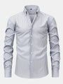 Elevate Your Wardrobe with our Long Sleeve Striped Shirt and Slim Fit Tapered Pants Set. The shirt features an elegant vertical stripe pattern and a classic collar, making it perfect for transitioning from the office to dinner with ease.