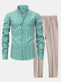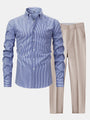 Button-Up Long Sleeve Striped Shirt with Slim Fit Tapered Pants