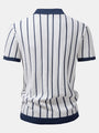 Button-Up Striped Knit Shirt with Straight-Leg Linen Trousers